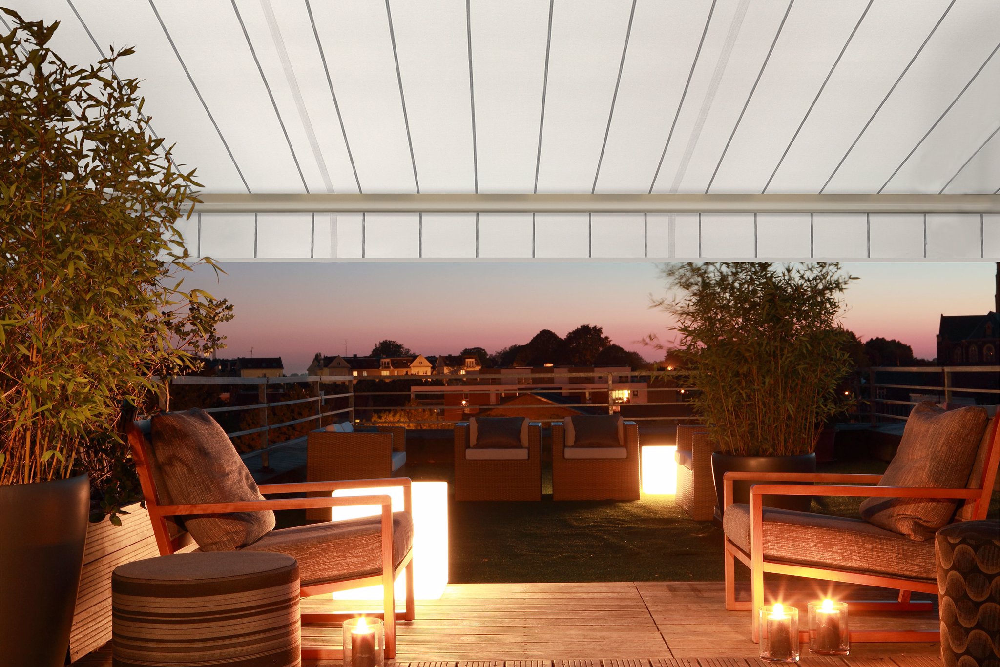 Elegantní sluneční clona se zaoblenou kazetou se hodí do míst, kde by odkrytá konstrukce působila rušivě. Kazeta plní estetickou a zároveň ochrannou funkci. Látka se při jejím svinutí dokonale schová do kazety a je tak chráněná před vnějšími vlivy počasí.