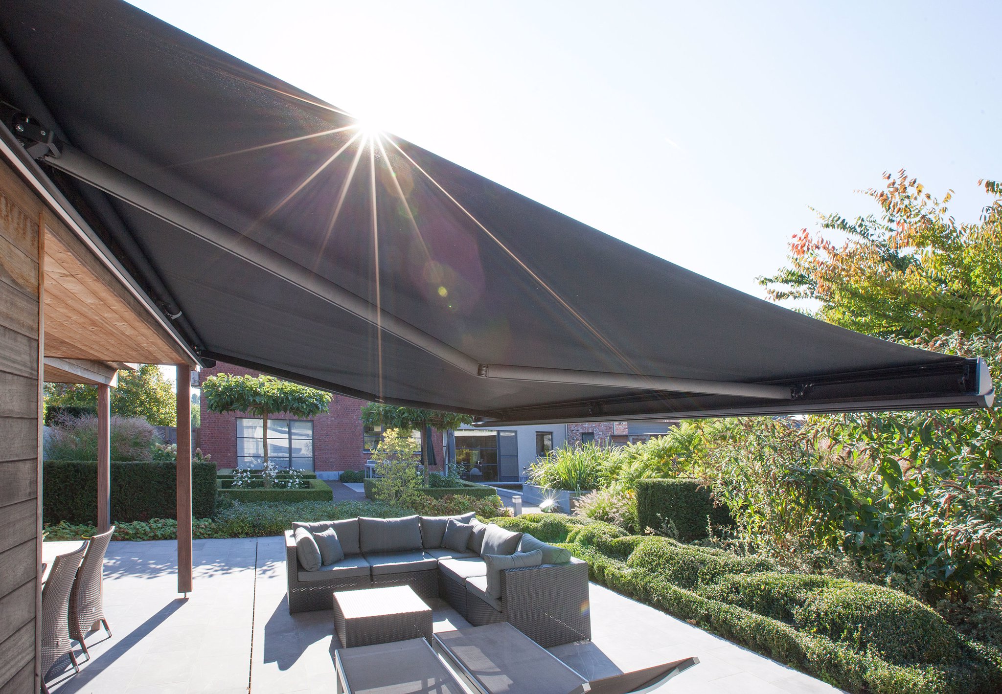 Eliminuje sluneční záření a teplo až z 95 %. Použité vlákno SUNACRYL a technologie barvení látek ve hmotě (solution dyed acrilic) zaručuje vysokou barevnou stálost markýzových látek.