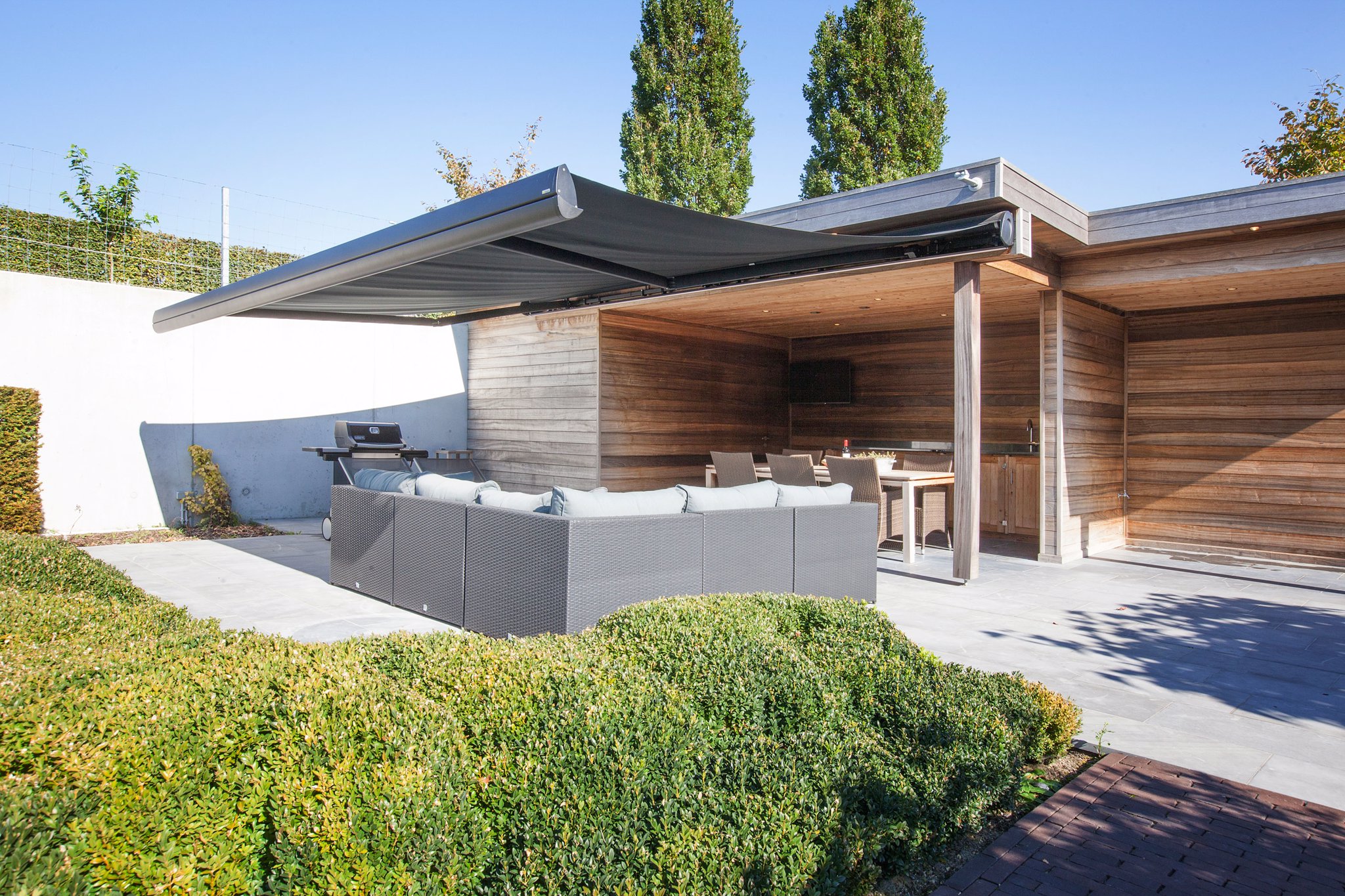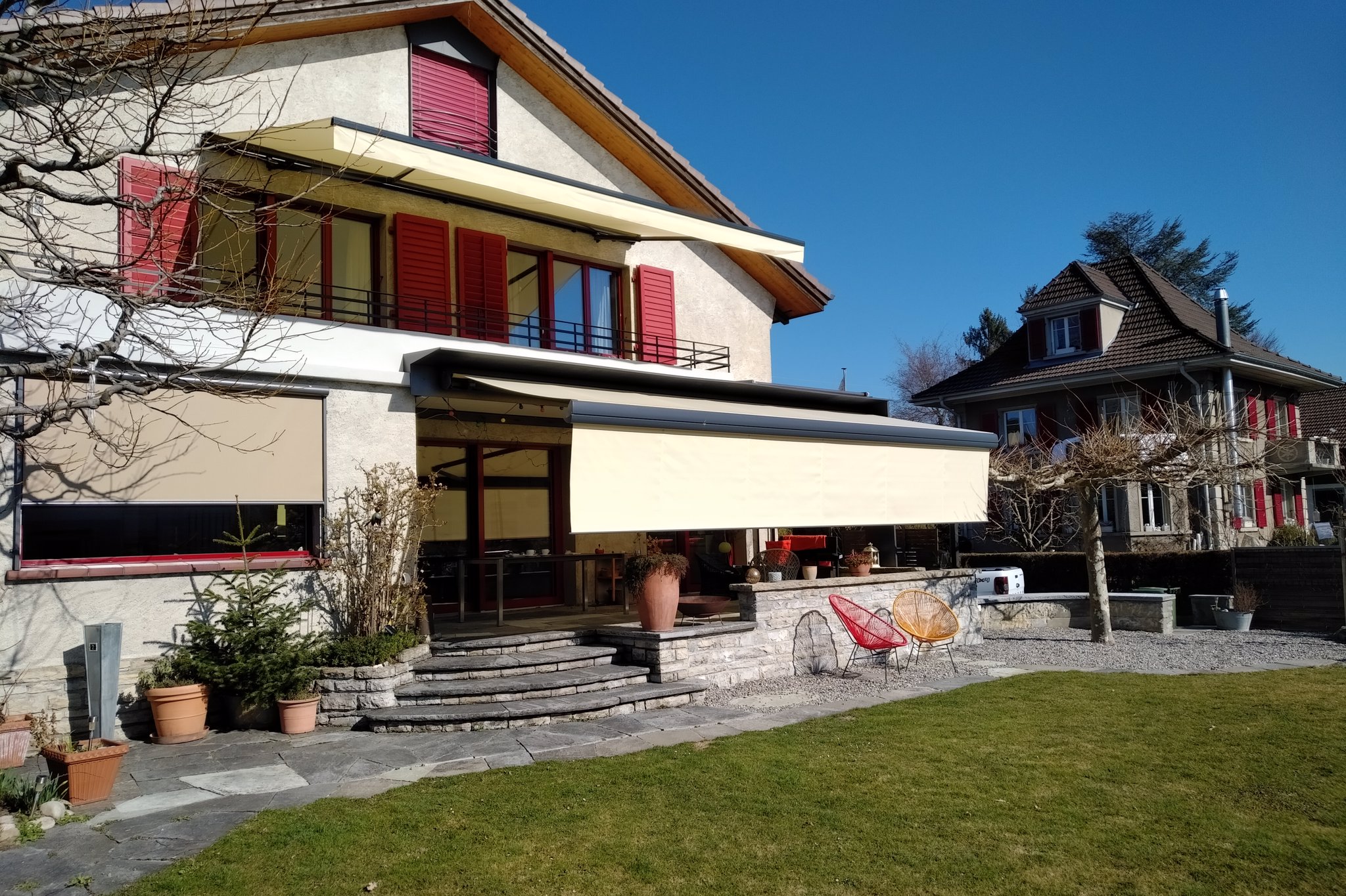 Při výběru látky je vhodné myslet i na to, že vytažená markýza může ovlivnit barvy také v interiéru. Důležitost výběru odstínu látky se také klade na sladění s barvami architektonických a přírodních prvků v dané oblasti.